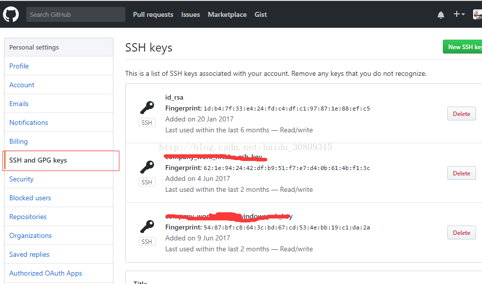 用记事本打开 id_rsa.pub 文件,复制内容,在 github.com 的网站上到 ssh 密钥管理页面,添加新公钥,随便取个名字,内容粘贴刚才复制的内容。