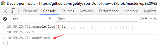 If you're running console.log() from the console itself, it makes sense. This is why: In the console you can type a name of a variable (for example try typing window) and it prints info about it. When you run any void function (like console.log) from the console, it also prints out info about the return value, undefined in this case.